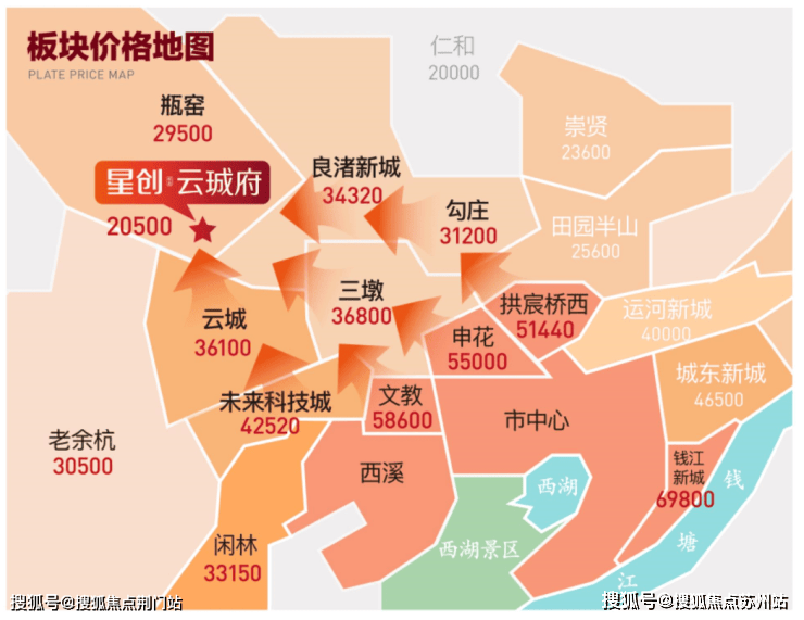 旁边良渚新城与云珹府同类型的产品,精装限价约3.041万/㎡,与云珹府之间也存在约1万/㎡的价差。